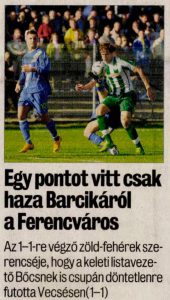 Eddig két alkalommal került sor az NB II-ben Kazincbarcika–Ferencváros találkozóra, és bár mindkétszer vezetést szerzett a Fradi, győzni egyik alkalommal sem tudott. Ezúttal sem történt másképp: Pölöskey Péter góljával előnybe kerültek a zöld-fehérek, ám a második félidőben Debreceni Dávid egyenlített. Bamba Moussa kiállítása után, emberhátrányban jobban játszott a Ferencváros, de helyzeteket alig dolgozott ki, így maradt az 1–1.