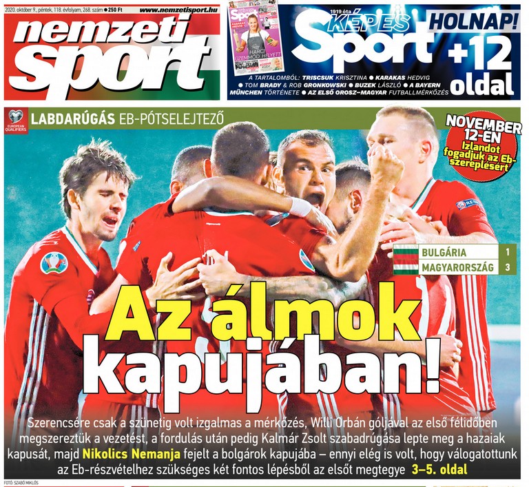 A labdarúgó Európa-bajnoki pótselejtező elődöntőjében a magyar válogatott 3–1-re nyert Bulgáriában, így már csak egy lépcsőfok választja el nemzeti csapatunkat a részben hazai rendezésű kontinenstornától.