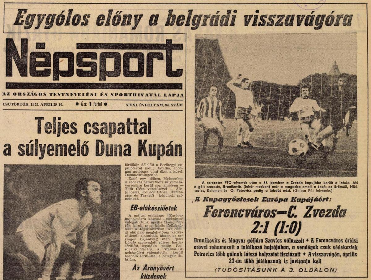 1975.IV.9. KEK, Ferencváros – Crvena Zvezda 2:1