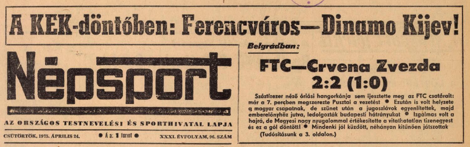 1975.IV.23. KEK, Crvena Zvezda – Ferencváros 2:2