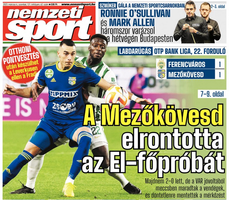 A labdarúgó NB I 4. fordulójából elhalasztott mérkőzésén a Mezőkövesd a Ferencvárost fogadta, és bár alig néhány napja az Üllői úton pontot szerzett, hazai pályán már nem sikerült neki a bravúr. A Ferencváros biztosan nyert 2–0-ra, és egy pontra megközelítette a Paksot.