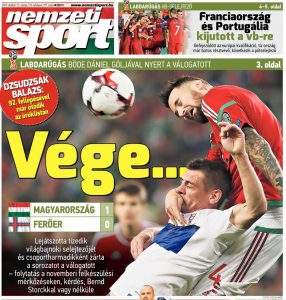 A magyar labdarúgó-válogatott 1–0-ra legyőzte hazai pályán Feröert az európai vb-selejtezők csoportszakaszának utolsó fordulójában. A mieink gólját a csereként beálló Böde Dániel szerezte a 81. percben.