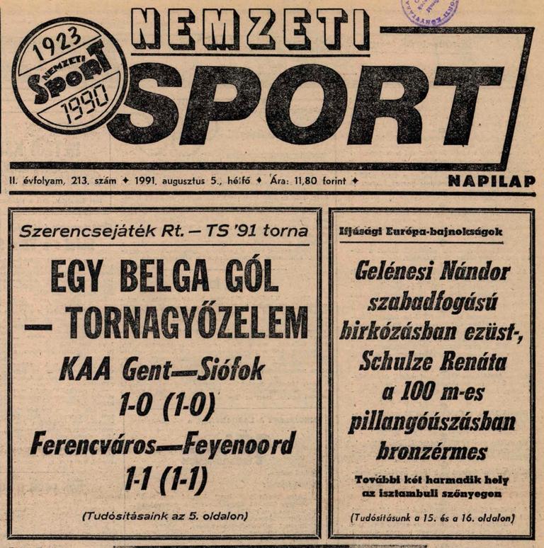 1991.VIII.4. Szerencsejáték Rt. – TS ’91 torna, Ferencváros – Feyenoord 1-1 Közzétéve: 2009. április 1. szerda | Szerző: K@rcsi Siófoki tornagyőztes a Gent Egy kattintás ide a folytatáshoz.... →