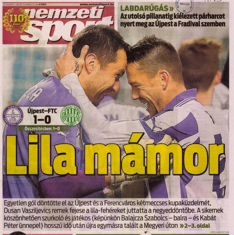 A Ferencváros–Újpest mérkőzésen, a labdarúgó Magyar Kupa nyolcaddöntőjének első felvonásán nem esett gól, a visszavágón is csak egy: mivel ezt a lila-fehérek szerezték Dusan Vasziljevics révén, ők mentek tovább a sorozatban. Nem segített tehát az edzőváltás a Fradin, a Ricardo Monizt ideiglenesen váltó Máté Csaba vereséggel debütált vezetőedzőként a csapat kispadján.