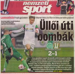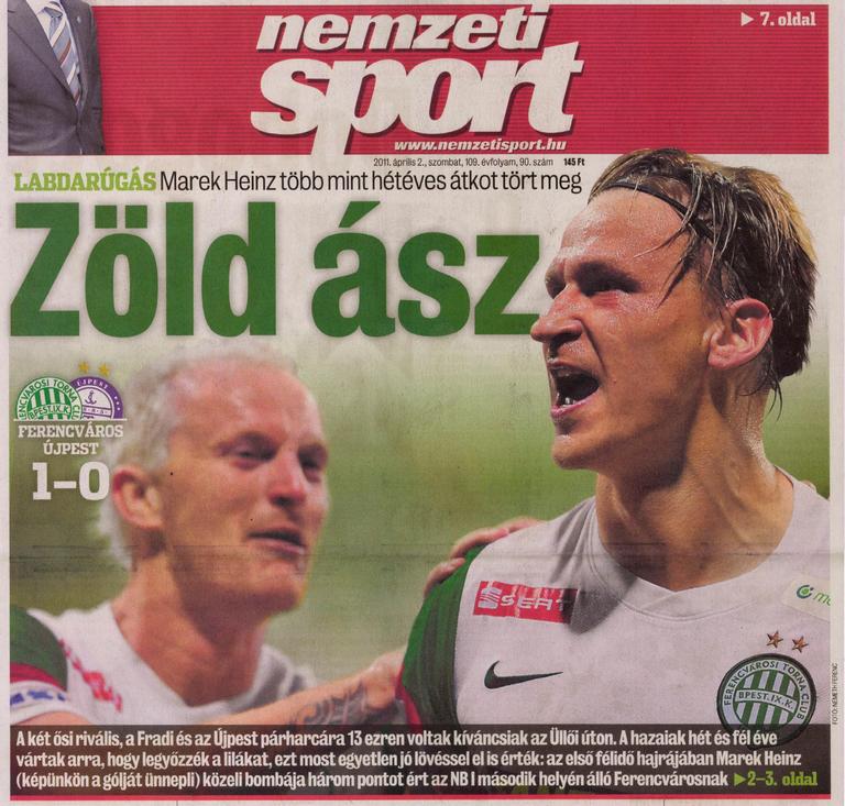 A Ferencváros hazai pályán 1–0-s győzelmet aratott az Újpest ellen a labdarúgó NB I 21. fordulójában. A mindent eldöntő találatot az őszi 6–0-s vereség alkalmával kérdéses körülmények között kiállított Marek Heinz szerezte. Egy kattintás ide a folytatáshoz....