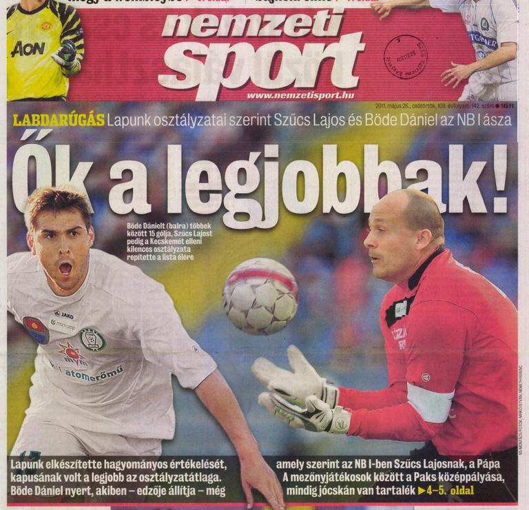 Szűcs Lajos (Lombard Pápa) a bajnoki idény legjobbja — A mezőnyjátékosok között Böde Dániel (Paks) a rangelső