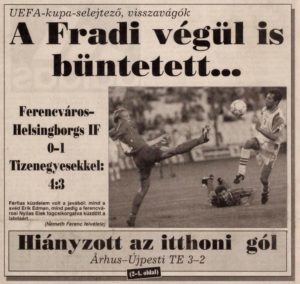 1997.VIII.26. UEFA selejtező, Ferencváros – Helsingborgs IF 0-1 Közzétéve: 2009. április 7. kedd | Szerző: K@rcsi Nyilas maga a profijátékos etalonja Egy kattintás ide a folytatáshoz.... →