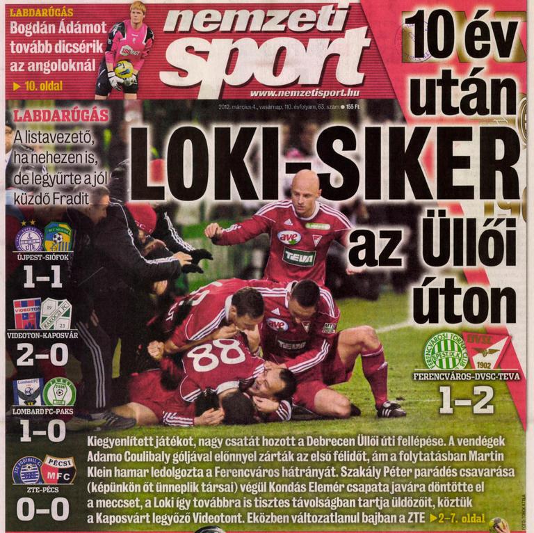 A labdarúgó NB I 18. fordulójában a Ferencváros a DVSC-Tevát fogadta, és 2–1-es vereséget szenvedett. Egy kattintás ide a folytatáshoz....