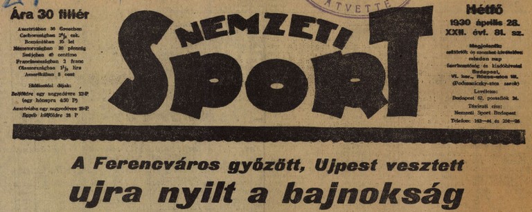 1930.IV.27. Nemzeti – Ferencváros 1:3