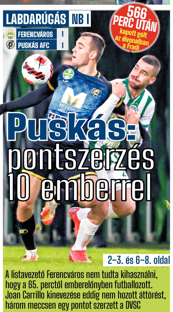 2025.XI.30. Puskás Akadémia – Ferencváros: 1-2