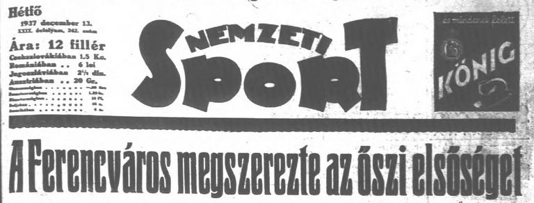 1937.XII.12. Ferencváros – Phöbus 5:0