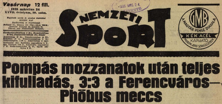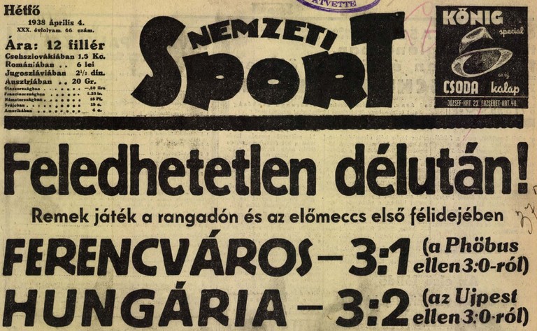 1938.IV.3. Phöbus – Ferencváros 1:3