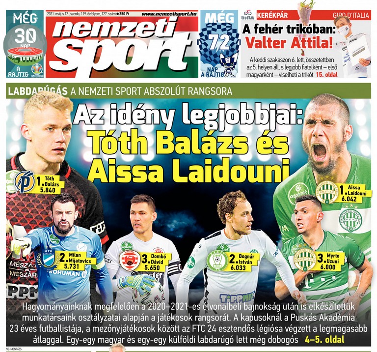 2020/21: Játékosrangsor Közzétéve: 2020. december 29. kedd | Szerző: K@rcsi Az idény legjobbjai: Tóth Balázs (Puskás Akadémia) és Aissa Laidouni 2020 ősz: Dibusz Dénes az ősz legjobbja — A mezőnyjátékosok között Aissa Laidouni a rangelső Egy kattintás ide a folytatáshoz.... →