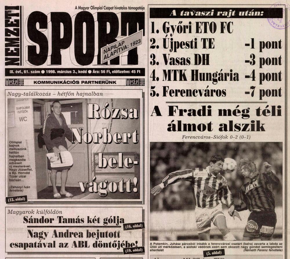 1998.IV.19. Falu Gábor Emléktorna, Tápszentmiklós/Győrasszonyfa – Ferencváros 2-9