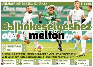 A labdarúgó NB I 17. fordulójának nyitó mérkőzésén a címvédő és listavezető Ferencváros hazai pályán a duplázó Olekszandr Zubkov vezérletével 4–0-ra legyőzte a Paksot.