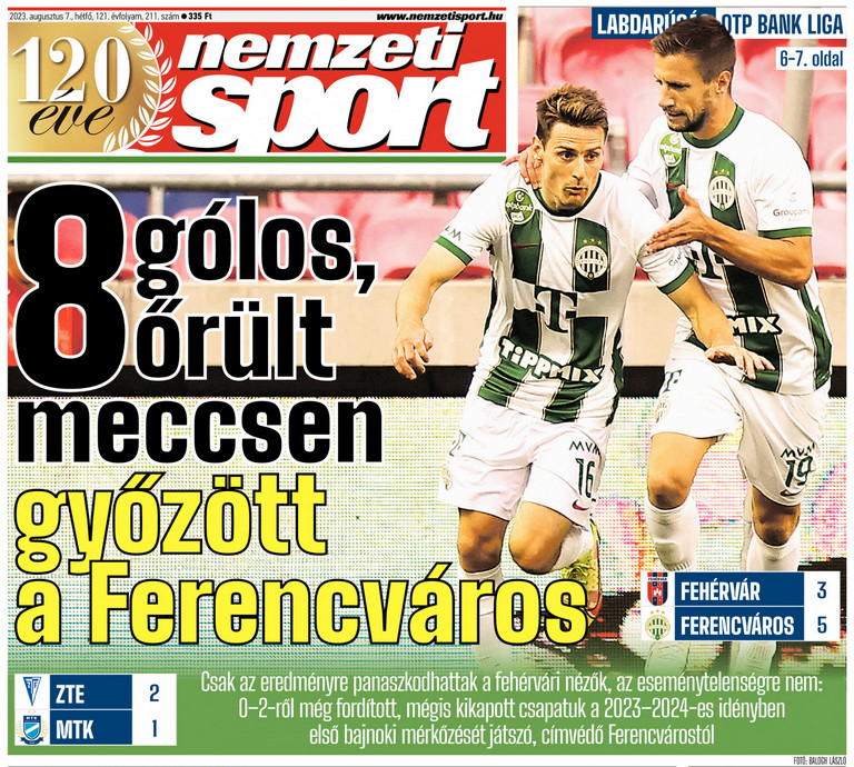 2023.VIII.6. Fehérvár FC – Ferencváros: 3-5