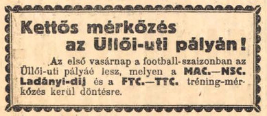 1913.II.9. FTC – TTC 11:0 (edzőmérkőzés) Közzétéve: 2009. január 13. kedd | Szerző: K@rcsi Egy kattintás ide a folytatáshoz.... →