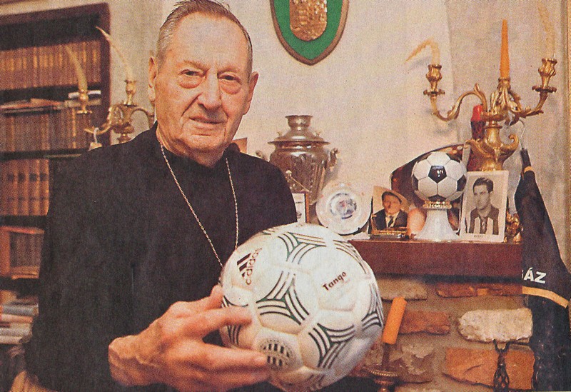 A 93 esztendős, de továbbra is a futballban élő Rudas Ferenc végzi el a kezdőrúgást a Chelsea elleni pályaavatón