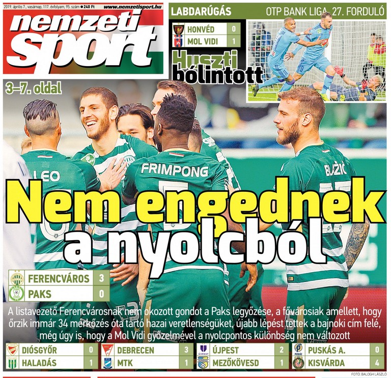 A Ferencváros három góllal nyert odahaza „mumusa”, a Paks ellen a labdarúgó NB I 27. fordulójában, ezzel a listavezető tovább menetel a bajnoki aranyérem felé.