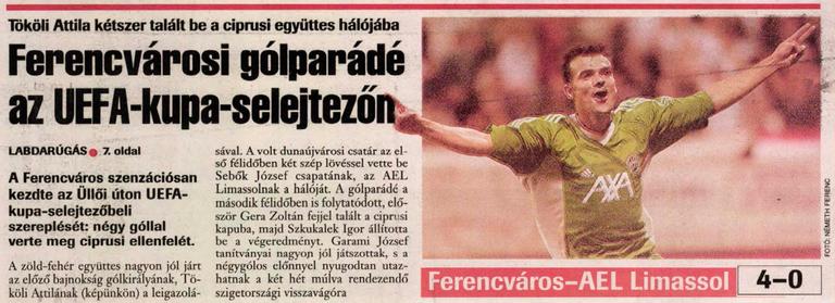 2002.VIII.15. UEFA selejtező, Ferencváros – AEL Limassol: 4-0
