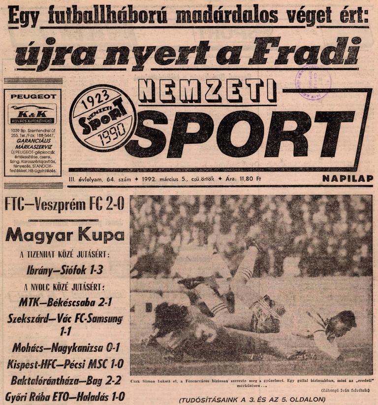 1992.III.4. Ferencváros – Veszprém 2-0 Közzétéve: 2009. április 2. csütörtök | Szerző: K@rcsi A Ferencváros végig fölényben játszott, sikere egy pillanatig sem forgott veszélyben. Egy kattintás ide a folytatáshoz.... →