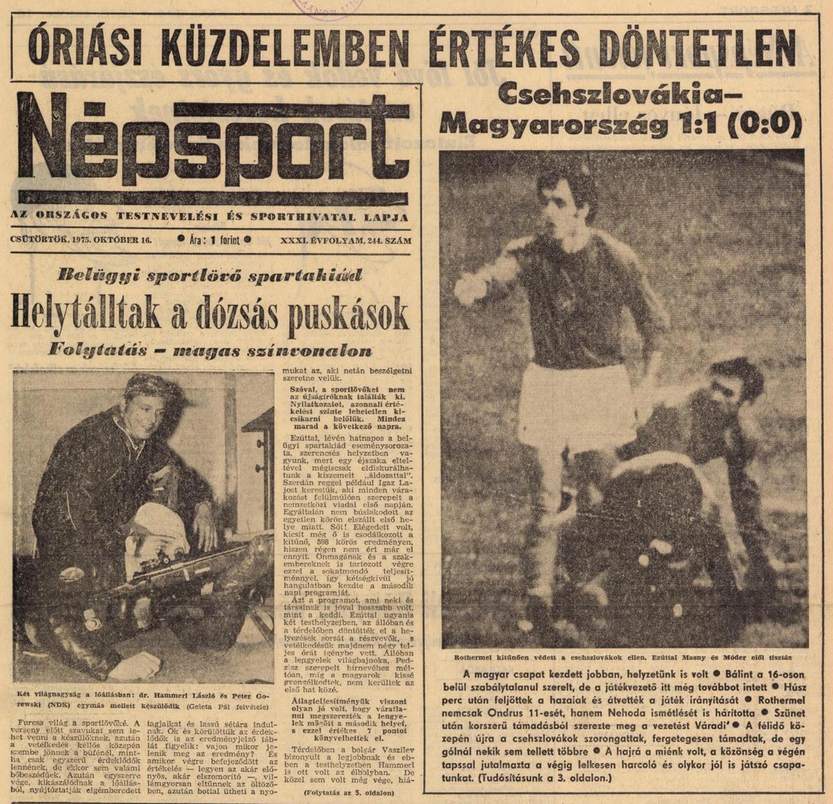 1975.X.15. Csehszlovákia – Magyarország 1:1