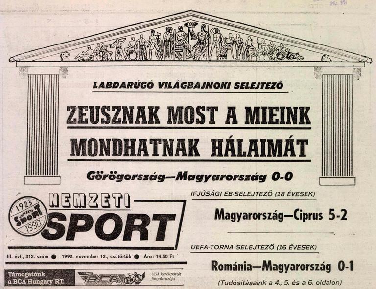 1992.XI.11. VB selejtező, Görögország – Magyarország 0-0