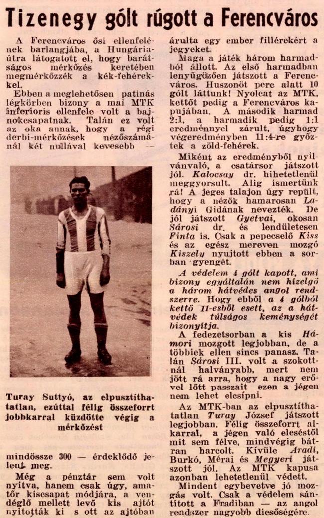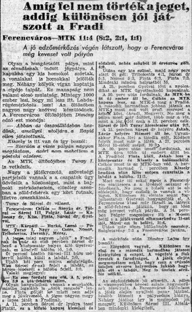 1941.II.9. MTK – Ferencváros 4:11 (edzőmérkőzés) Közzétéve: 2009. február 10. kedd | Szerző: K@rcsi Amíg fel nem törték a jeget, addig különösen jól játszott a Fradi Tizenegy gólt rúgott a Ferencváros Egy hozzászólás a(z) 11110010101ejegyzéshez Takács Gábor on 2018. február 9. péntek - 08:35 NEM ROSSZ… Vélemény, hozzászólás? Válasz megszakításaAz e-mail címet nem tesszük közzé. A kötelező mezőket * karakterrel jelöltük Hozzászólás * Név * E-mail cím * Honlap Δ