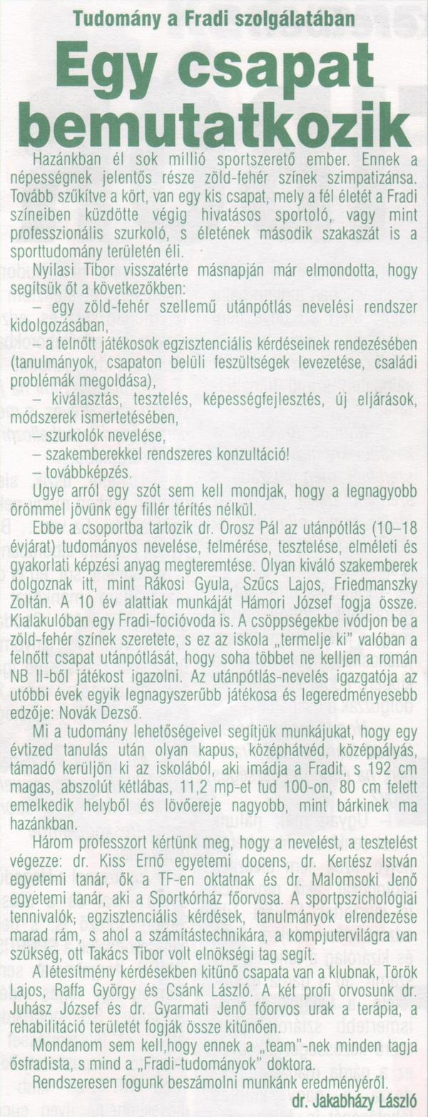 Kategória: Hírek, események | Címke: 1997/98, életrajzokhoz, fh, Friedmanszky Zoltán, Hámori József, Novák Dezső, Nyilasi Tibor, Orosz Pál dr., Rákosi Gyula, Szűcs Lajos (fedezet), utánpótlás
