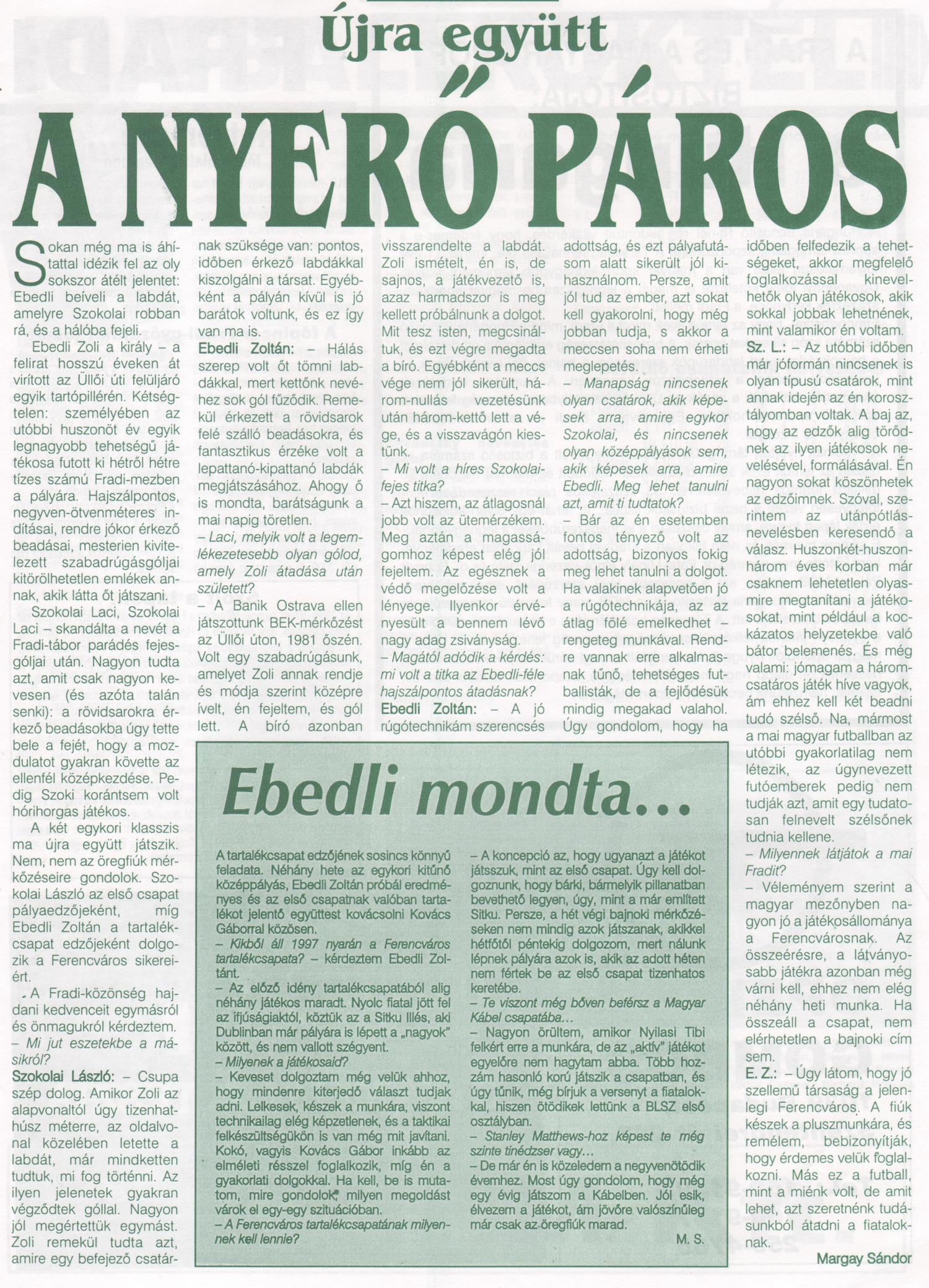 Kategória: Szakmai stáb | Címke: 1997/98, Ebedli Zoltán, életrajzokhoz, fh, Szokolai László, utánpótlás