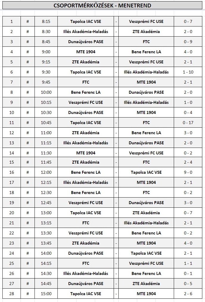 A mérkőzések eredményét és a folyamatosan frissített tabellát itt találjátok: TABELLA!