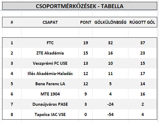 A csoportkör utolsó három mérkőzése következik: Illés Akadémia – Bene Ferenc Akadémia, Dunaújváros – ZTE, és TIAC – MTE.