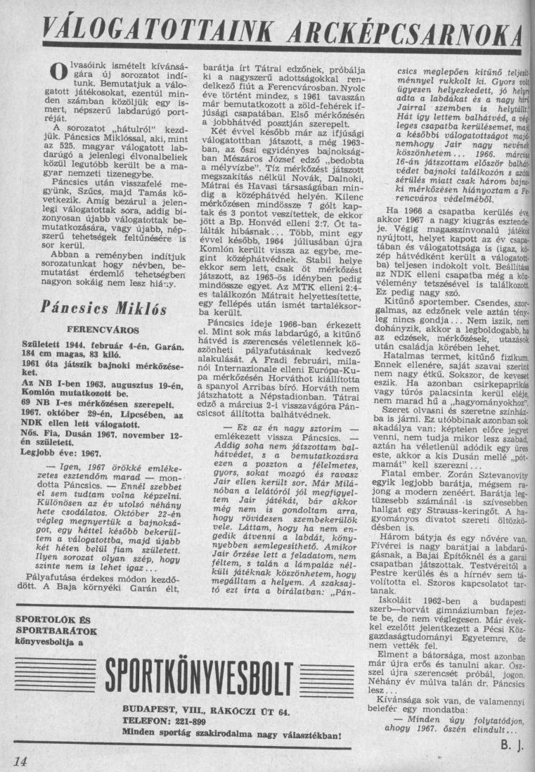 Válogatottaink arcképcsarnoka: Páncsics Miklós