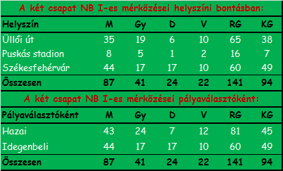 A két csapat 88. (az Üllői úton a 36.) bajnoki mérkőzése következik.