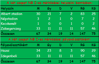 Amíg a ’70-es években rendezett találkozókon fej-fej mellett haladtak a csapatok, addig a ’80-as években a hazaiak bizonyultak jobbnak. A ’90-es évek találkozói rendre zöld-fehér sikerrel zárultak. A hat bajnokiból négyszer is győztesen hagyták el a zalai fővárost. A kétezres években rendezett találkozókon a győzelmi arány 3-2 a hazaiak javára.
